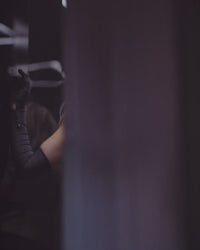 Model wears Sheer Impact Underwire Bra in BLACK. On body back view