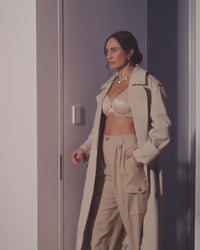 Model wears Manifest Underwire Bra in LATTE. On body side view